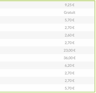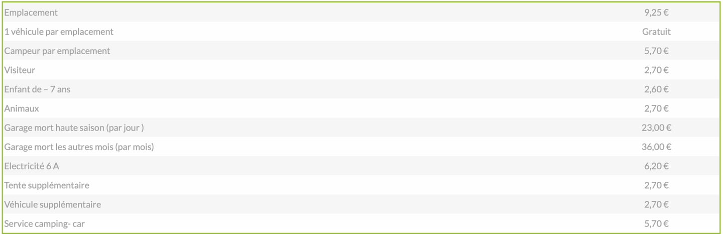 Tarifs 2025 par Nuitée